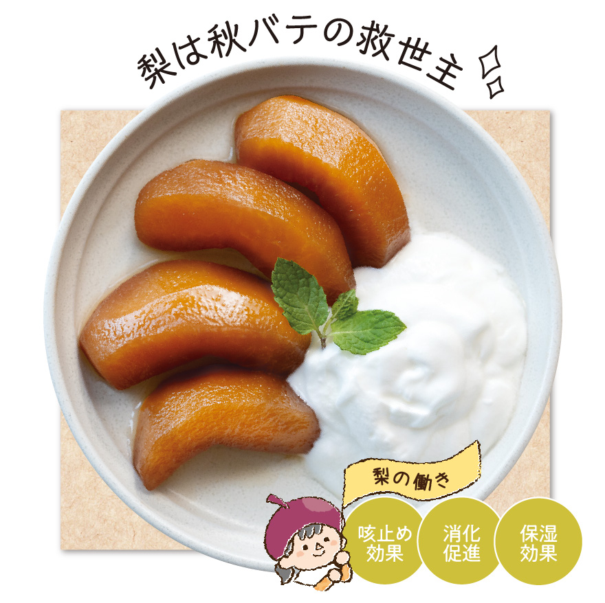 ⑤冷やした梨を器に盛り付け、お好みでヨーグルト、ミントを飾り付けたら完成!
